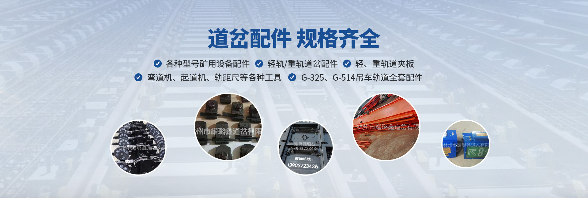 各種型號(hào)礦用設(shè)備及配件;輕軌道岔、重軌道岔及配件;各種型號(hào)輕、重軌道夾板;輕軌、重軌線路用彎道機(jī)、起道機(jī)、軌距尺等各種工具;G-325、G-514吊車(chē)軌道全套配件。